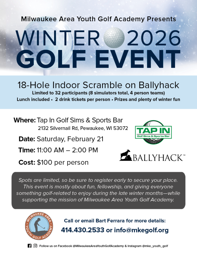 Register for the Milwaukee Area Youth Golf Academy Open! Questions? Contact us.